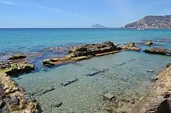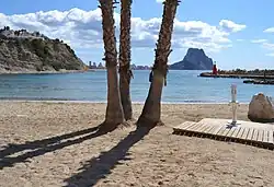 Calpe has two urban beaches. 🌍 Platja de l'Arenal-Bol (Playa del Arenal-Bol), to the west of the Penyal d'Ifach, is characterised by over a kilometre of fine sand and it has a pleasant tree-lined promenade. 🌍 Platja de la Fossa (Playa de Levante / Playa La Fossa), to the northwest, is somewhat smaller, also with a promenade. In the summer both beaches have lifeguards, first-aid stations, showers, toilets, and disabled access, loungers and umbrellas (for rent), and a range of shops and restaurants.