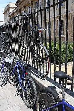 Bicycle theft is an ongoing problem. If you have a bike, keep it locked up to a solid object with a strong lock (preferably a D-lock), as cycle theft is big business. There are cycle parking places with cycle stands to lock you bike to, in several places around the city centre and at the railway station. "Secure" covered cycle parking with CCTV surveillance and cycle stands is available in the lower section of the Park Street car park and at the Grand Arcade cycle park.