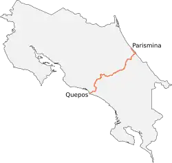The trail runs from sea to sea and is usually started from the Atlantic side at the fishing village of Parismina, ending at the Pacific in the coastal beach town of Quepos. The trail consists of 16 sections, each constituting about a 1-day hike. Concrete pylons are positioned at each destination.