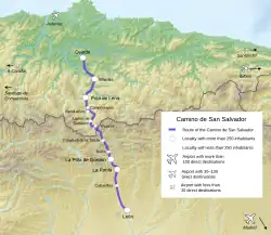 This route is about 120 km long and connects the Camino Frances in León with the Camino Primitivo and the Camino Norte in Oviedo.