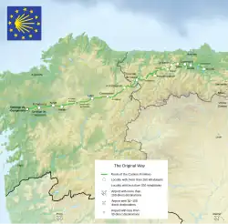 The Camino de Santiago (in English also The Way of St. James, Galician: O Camiño de Santiago, Ruta Xacobea), often referred to colloquially as simply the Camino in English or El Camino in Spanish, is one of the most important Christian pilgrimages in Europe and increasingly famous throughout the world, with Santiago de Compostela, Spain, as the final destination. In 2024 there were about half a million pilgrims recorded along the routes.