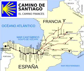 The French Way (Spanish: Camino Francés) is the most popular of the routes of the Way of St. James and thus has the best infrastructure. For a description of the route from Saint-Jean-Pied-de-Port across the French border, please refer to the main article. For the routes to there from different points in France, see Routes to Santiago de Compostela from France.