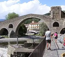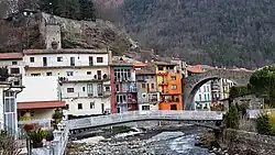 - 🌍 New Bridge (Pont Nou). It is located over the Ter, just after its confluence with the Ritort, which separates the Vila de Dalt (or nucleus centered by the monastery) from the Vila de Baix. The bridge was probably built between 1196 and 1226, and partly rebuilt in the 14th century, in order to make way for the bridleway that led to Cerdanya.