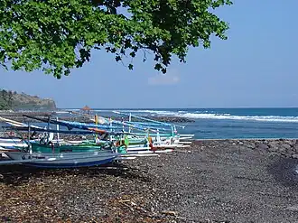 Candidasa (or Candi Dasa, pron. "CHAHN-dee-dah-sah") is a coastal town in East Bali. This is a laid back and very relaxing area of Bali with a wide range of accommodation options. Many visitors, especially Europeans, combine a stay in the hotspots of south Bali with a more relaxed break here. The black sand beaches are very narrow and often disappear altogether at high tide.