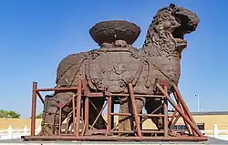 - 🌍 Iron Lion of Cangzhou statue (沧州铁狮子), Inside Cangzhou Iron Lion and Old City Heritage Park. The majestic Cangzhou Iron Lion was built during the Five Dynasties.The Cangzhou Iron Lion is 5.78 meters tall, 5.34 meters long, 3.17 meters wide, and weighs about 40 tons. There are "Lion King" cast on the top of the head and under the neck, and the text of "Diamond Sutra" is cast all over the abdomen. However, due to the age, the writings are many and incomplete. The words "Made in the third year of Guangshun in the Great Zhou Dynasty" are cast on the right side and the side, and the five characters "Made by Li Yun in Shandong" are cast on the right rib. Carrying a huge basin on its back, it faces south and tail north, with its head held high, its mouth wide open, and its limbs walking.[7] The Cangzhou Iron Lion is the oldest and largest cast iron lion in existence in China. It fully demonstrates the wisdom and great creativity of ancient craftsmen. It is cast using the clay mold and open casting method. It occupies an important position in the history of world metallurgy and is of milestone significance. It shows the high achievements of ancient Chinese casting technology and is an important material material for studying ancient Chinese casting technology. It is also an important material material for studying the development level of social productivity and Buddhism at that time.