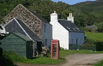 Canna is the westernmost of the Small Isles off the west coast of Scotland. It's joined by a road to the smaller tidal island of Sanday. Canna, Sanday and their surrounding skerries are managed by the National Trust for Scotland (NTS), and are run as a farm and conservation area. The people of Canna (numbering 15 in 2021) all live near the ferry pier at the east end of the island, while the west end and Sanday are uninhabited.