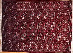 Turkmen (or Turkoman) tribes, traditionally nomadic, have a long tradition of carpet-making. The small central Asian nation of Turkmenistan (once part of the Persian Empire, and later the Russian Empire and the Soviet Union) is the main source, but neighboring countries, especially Iran but also Uzbekistan and Afghanistan, also have some Turkmen people and rugs. In most cases red is the dominant colour and the pattern includes repeated elements called guls.