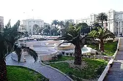 The main artery of the historic centre is Corso Giuseppe Mazzini which starts from Piazza Garibaldi where Viale Carlo V meets and leads to the Catanzaro Pratica station below. Corso Mazzini ends in piazza Roma, leaving the cathedral on the left and the modern Politeama theatre on the right.