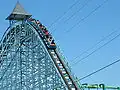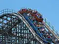 Gemini Two trains run side-by-side for most of the course, one inevitably beating the other. This coaster has a wood structure, but steel-tubular Track. Over 48 in (1,200 mm) 5