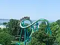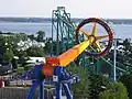 Corkscrew A steel roller coaster that spans the midway. It was the first coaster with 3 inversions and the first coaster to span a midway when it first opened. Over 48 in (1,200 mm) 5