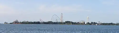 Cedar Point is on a peninsula surrounded by Lake Erie, and has a few beaches you can access and see the lake directly from.