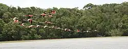 The Biosphere Reserve lies to the north and east of the town. It is a vast wetland of mangrove swamps (known as the Petenes region) fed by natural springs drawing water from underground aquifers. Amid the swamps are lagoons and marshes and areas of tropical rainforest. The famous flamingos are just one of the many species that live and nest in the wetlands here. Several species of heron, pelican, ibis, and osprey can be seen. UNESCO says the area is home to 304 bird species. The number of flamingos alone is more than 20,000. A popular spot in the reserve is Bird Island, which is populated mainly by egrets and pelicans.