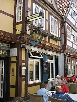 - Schweine-Schulze, Neue Straße 36 (approx 100 m from the Rathause, (with your back to the Rathaus, Neue Straße is straight ahead)), ☏ +49 5141 22944. Serving traditional German food, the restaurant dates back to 1820, the food is very good and cooked to order, the dishes are not small. Very good value. Be careful with the price. What the restaurant charges is more than the price on menu.