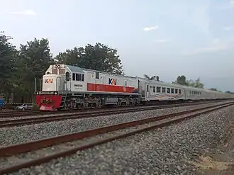 The region is well served by trains with two main lines, one along the north coast linking Blora, Cepu, Grobogan, Pekalongan, Semarang, and Tegal, with stops in between. The southern line links Solo and Yogyakarta with Purwokerto, Kebumen, and small towns on the south coast. Both lines continue through to Jakarta in the west and Surabaya in the east. The loop line Joglosemarkerto train connects the north coast to the south coast of Central Java. The trains are comfortable and run to schedule.