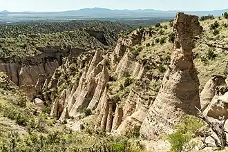 - Kasha-Katuwe Tent Rocks National Monument, near Cochiti Pueblo south of Santa Fe, is an under-appreciated little gem that was one of several national monuments created in the waning days of the Clinton administration and doesn't appear on even some recent maps. Trails (hiking boots recommended despite their brevity) take the visitor on a 1.5 mi (2.4 km) loop past some of the eponymous rock formations, and on a 1.3 mi (2.1 km) (each way, some rough spots) trip to an overlook that includes a short but spectacular section of slot canyon. From I-25, follow NM SR 16 or SR 22 to Cochiti Pueblo, then follow signs to the monument. Day use only, with no camping. After several years of negotiation with the pueblo on which it is located, visitors must now make a reservation on recreation.gov and purchase a Cochiti Pueblo Tribal Access Pass.