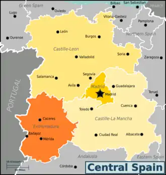 Central Spain has a very different climate than the coastal areas. Unlike the coasts, which have a typical Mediterranean climate, the inland areas have a continental climate. The summers are very hot, regularly exceeding 35 º C. By contrast, there are very low temperatures in winter. The locals use an old Castillian saying to describe their climate as "nine months of winter and three months of hell".