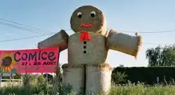 As the agricultural harvest comes to an end (through Aug) you will see large agricultural figures made of bales of straw start to appear alongside main roads advertising the local Agricultural Comice similar to an agricultural village fete. In some cases this can become an opportunity for locals to "unwind" after the busy harvest time.