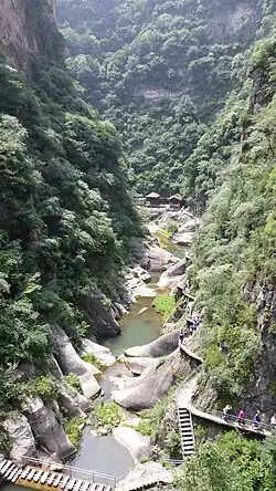 - 🌍 Taihangshan Grand Canyon (太行山大峡谷; Tàihángshān Dàxiágǔ, Grand Gorge of Taihang), Daxiagu Town, Huguan County (壶关县大峡谷镇) (take the special tourist bus that departs from the Huguan County Seat North Bus Station; alight when you get to the visitor center), toll-free: +86 400 0710999. Not to be confused with the similarly named Taihang Grand Canyon (太行大峡谷) in Linzhou, Henan Province. As of April 2024, the park is closed due to road works. It will reopen again on July 1st.