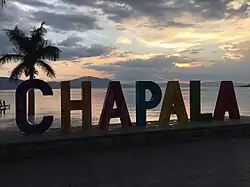 Chapala is located in the central zone of the state. Chapala is also the name of the biggest lake of the country. Chapala means "place of Vases"(Nahuatl); "really wet place" (Coca); or "place of grasshoppers over the water" (Nahuatl).