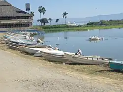 - π La Palapa del Guayabo, Ramon Corona 24, β +52 376 765 4606. Su-F 10:00 - 19:00, Sa 10:00 - 20:00. Lakefront seafood restaurant with large upper level dining room with lake views. Food is traditional Mexican seafood (ceviche, shrimp, filetes) with some regional flares. Full bar serves a variety of large cocktails. Try the molcajete, a large volcanic stone bowl served sizzling hot and filled with a variety of seafood including octopus, shellfish, and shrimp, topped with avocado slices. M$300.