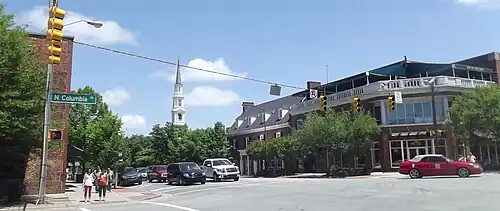 Many restaurants in Chapel Hill are on Franklin Street and the roads nearby Franklin Street, but some restaurants are away from Franklin and others can be found in residential neighborhoods such as Meadowmont and Southern Village within the Chapel Hill city limits.