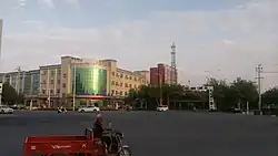 Highway 218 (Guodao 218) has its southern terminal at this town. Heading north, you pass through Kuerle (Korla) and Wulumuqi (Ürümqi).