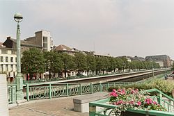The most picturesque part of the Ville Basse is the Sambre, whose right (northern) bank features the tree-lined elegant boulevards Quai de Brabant and Quai de Flandre. The left (southern) bank is dominated by the Gare du Charleroi-Sud, the city's main train station, with an imposing historic building dating back to 1874, the middle of Charleroi's own golden age, and renovated in 2011.
