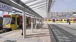 - M4 goes eastwards to the Soleilmont intermodal terminus in Gilly