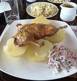- 🌍 Restaurant Turístico Pukutay, Jirón Tupac Yupanqui 230 (between the site and the town square Plaza de Armas.), ☏ +51 978473097, pukutay.chavin01@gmail.com. 8:00-19:00. In an old house, items on the menu include cuy, trout prepared in different ways, pork rinds and salted loin.