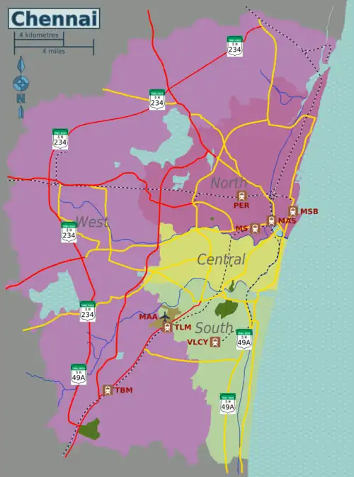 | North Chennai The oldest part of the city north of the Coovum River. Home to MGR Chennai Central and Chennai Port. |
