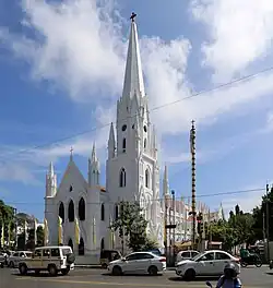 - 🌍 St. George's Cathedral (செயின்ட் ஜார்ஜ் கதீட்ரல்), 224, Cathedral Rd (Next to U.S. Consulate), ☏ +91 44-28114261, +91 98409 31556 (mobile). Built in 1815. A neoclassical church. Showing elements of Georgian architecture. It has a towering 45-m spire and ionic columns. The highlight of this cathedral is the graveyard. Connected by a guardrail that was made up of war emblems of the capture of Srirangapatna in 1799.
