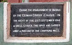 - 🌍 Emden Plaque. The western wall of the Madras High Court houses a plaque marking the exact spot where the cell from the German Cruiser struck the high court wall during the bombertment of Madras on 22 September 1914. This happens to be the only attack on India during World War I
