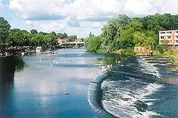 - π The Groves, riverside (Behind Grosvenor Park). The Groves is Chester's own riverside promenade running alongside the River Dee from the Grosvenor Park to the Old Handbridge (which gave its name to one of the suburbs on the other bank).