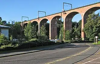 - 🌍 Chester Burn viaduct was completed in 1868 for the North Eastern Railway, and still carries the London-Newcastle main line. It's 230 m / 750 ft long with 11 arches, spanning a road and Tesco supermarket car-park.