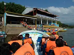 There are several different places to catch a speedboat tour, but as of April 2024 they all charge the same standardized price of M$320 per person "colectivo" style (shared with strangers, leaving only when full) for a 2+ hour tour through the whole canyon down to the dam at the far end and back. That doesn't include the nearly-mandatory tip for the boat driver, which they'll pressure you to give before taking you back to land (M$50 should be plenty). Prepare to wait up to an hour or two if there aren't a lot of visitors to fill up the boat. The boats generally include a Spanish-language tour guide, and usually can find wild crocodiles and spider monkeys along the edges of the canyon. There are also boats leaving from near the Tuxtla-San Cristóbal highway outside of town, but tour boats from within Chiapa de Corzo leave from two docks: