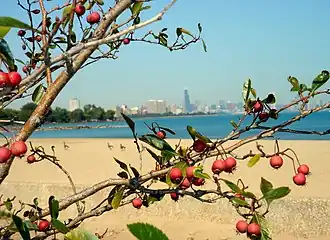- 🌍 Rainbow Beach, 7600 South Shore Dr, ☏ +1-312-747-0832. Summers (Memorial Day-Labor Day): 9AM-9:30PM. One of the best and biggest beaches in Chicago, boasting a magnificent South Side view of the Chicago skyline, where, as of 2024, the first hour of parking is $2, although you may find adjacent street parking for free. Free outdoor movies are often held in the adjacent Rainbow Park. Free.