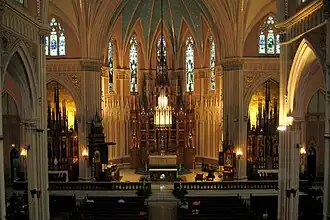 - 🌍 St Michael the Archangel Church, 8237 South Shore Dr, ☏ +1 773-734-4921. Perhaps the grandest example of the Polish Cathedral style on the South Side is this towering neogothic church, built in 1909. Of course, economic-driven neighborhood change has meant the end of the Polish steelworker demographic in this parish, which is now heavily Latino. The interior is very impressive — look especially for the hand-sculpted statue of St Michael defeating Lucifer, the oak and marble communion rail, and the enormous, beautiful German-made stained glass windows.