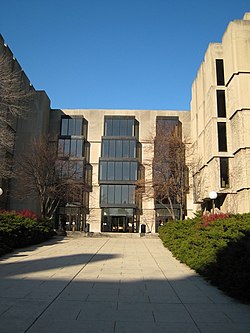 - π Regenstein Library, 1100 E 57th St, β +1-773-702-8740. You can get a visitor pass at the entry desk to browse the gigantic collection of over 4.5 million volumes, or just marvel at the exterior architecture. The building is one of the world's best examples of the Brutalist movement, which emphasized the structural materials (rough concrete in this case), as well as striking repetitions and irregularities of angular forms. Free Wi-Fi and public use computers - present a photo ID at the entry desk.