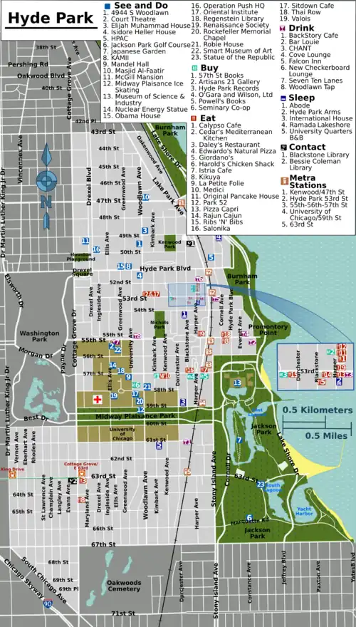 In the past, the University has had a big hand in zoning regulations designed to keep chain stores, and really any stores, out of the district. Until Akira opened up shop in the fall of 2012 in a university-owned building, Hyde Park actually lacked a single clothing store. Book lovers and collectors, on the other hand, will be thrilled with the multiple independent and used bookstores along 57th Street and the awe-inspiring Seminary Co-op. Aside from books, Hyde Park is now likely the world's number one destination for Barack Obama merchandise, who is becoming somewhat of a local hero figure. The convenience stores are full of dancing Obama dolls, t-shirts, etc., and other stores and restaurants are all touting "Obama eats here!" "Obama shops here!" Don't let the hype shape your choices though, it's a small neighborhood, and the Obamas have probably tried out all the restaurants by now.