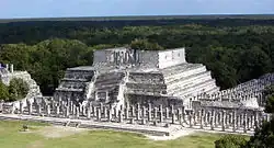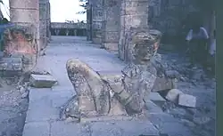 Temple of the Jaguars.Attached to the ballcourt complex, with stone jaguar, feathered serpent columns, and murals inside.