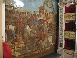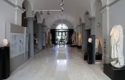 Under the church of SS. Pietro e Paolo and the adjoining houses are extensive substructures (in opus reticulatum and brickwork) of the 1st century CE, belonging to a building erected by M. Vectius Marcellus (probably mentioned by Pliny, H.N., II., 199) and Helvidia Priscilla. There are also remains of large reservoirs and of an ancient theatre. New excavations are under way on the site of the former Campo Sportivo.