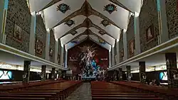 - π Basilica of the Immaculate Conception (Basilica de la Inmaculada Concepcion), Romero Vargas s/n, Centro. The basilica is the largest and most important church in Chignahuapan, it's a modern church with an exterior of stone giving it a traditional look, but inside, the huge church is bright and full of important ecclesiastic art. A row of paintings line the upper level of the main nave, the largest of which hangs over the main entrance. The most startling work is the enormous carved sculpture of the Immaculate Conception that stands over the altar. The 14-meter-tall work was carved in cedar by artist JosΓ© Luis Silva over a period of six years between 1966 and 1972. Don't overlook the fabulous ceiling either.