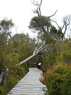 The predominant vegetation is that of the Valdivian forest, a dense forest formed by perennial trees, shrubs and climbing plants. The rainforests are made up of evergreen southern beech (Nothofagus), and some native conifers, including the magnificent alerce (Fitzroya cupressoides). Extensive bogs and swamps are found in the hills. The Chilean rhubarb is also very common.