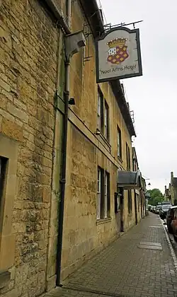 - 🌍 The Noel Arms Hotel, High Street, Chipping Campden, Gloucestershire, GL55 6AT, ☏ +44 1386 840317, reception@noelarmshotel.com. A historic inn, with modern amenities, where it is said that Charles II stayed during the English Civil War. The inn offers 28 en suite rooms located on High Street. Owned by the Cotswold Hotel across the street, the Noel Arms has a coffee shop and a pub which is known for its curries. £130.50+.