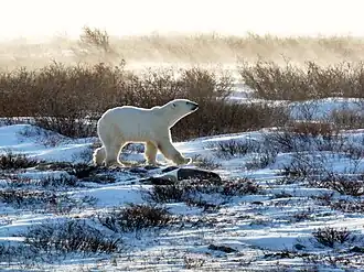 - 🌍 Wapusk National Park (South of Cape Churchill on Hudson Bay), ☏ +1 204-675-8863. This huge national park is difficult to visit, owing to its remoteness, and the fact that it houses a polar bear colony! (Wapusk means white bear in Cree.) Other animals include the usual suspects in this area: foxes white and red, arctic hare, snowy owls, and a few grizzlies that have been moving into the southern reaches as the temperature warms. The visitor center is in Churchill's train station. There are only three reasonable ways to get out here: a helicopter tour through Hudson Bay Helicopters, or a tour through Frontiers North or Wat'chee Expeditions. See our Wapusk National Park page for details.
