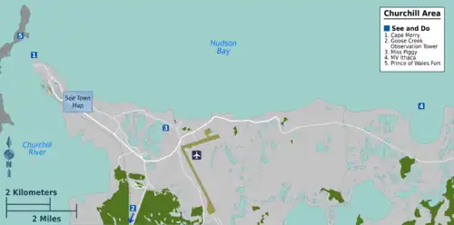- 🌍 Cape Merry (The northern tip of Churchill, past the port). An old cannon battery was set up in 1747 to protect the Hudson Bay Company's business on the Churchill River, rather stupidly, as the cannons there could be captured by an enemy and used to fire upon Prince of Wales Fort across the river. Nonetheless, it is a great scenic spot to look out on the bay and river and fort, with a genuine tundra ecosystem. The battery has been reconstructed with original stones found on location, with a single cannon left as a reminder of the site's history. Keep an eye out in bear season, as polar bears frequent the area when heading out onto the sea ice. It's not safe to walk from town, because of the bears, so take a taxi, get someone to give you a ride, or rent a car.