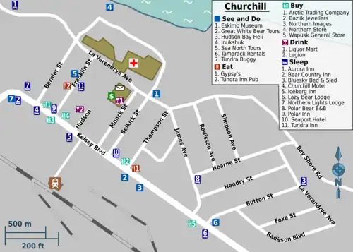 - 🌍 Churchill Motel, 209 Kelsey Blvd, ☏ +1 204-675-8853, motelch@mymts.net. The old Churchill Motel is a little worn, but still a perfectly acceptable option, and tends to have availability in bear season, if you are having trouble finding something. The proprietor Dave, is much loved by the guests. Good breakfast at the restaurant, and a very central location.