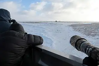 If ever there were a case for a good camera, it's a trip to Churchill! Bring/buy the best you can. Digital cameras don't stand up well to the cold, but they will still work. But bring extra batteries and film (if your camera uses it). In the winter, keep back up batteries close to your body to keep them warm, and switch them out when your active battery in your camera gets killed by the cold. If your camera breaks, Bazlik Jewellers can repair it. A long telephoto lens is generally required for wildlife photography; a good zoom lens may be enough but see Travel photography for a detailed discussion. A waterproof camera is a must if you plan to swim with the Beluga whales in the summer (a GoPro with a waterproof case can be great for video). Bring an extra memory card in case one fails (and the cold can help them fail).