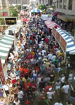 - π Oktoberfest, Fifth St. Cincinnati remembers its German history with a two day festival dedicated to beer and the marriage of Bavarian royalty. Cincinnati's Oktoberfest draws 500,000 over two days (Munich's Oktoberfest draws 6 million over two weeks) making it second biggest Oktoberfest after Munich's. On the Sunday everyone gathers at Fountain Square to participate in the "World's Largest Chicken Dance." Second and Third streets are closed along the interstate and lined with food vendors, beer tents (both local and Bavarian breweries participate), souvenir stalls, and music stages. Some of the acts are local rock bands, but rest assured, there are plenty of accordions and tubas for the traditionalists. The Thursday before hosts the "Running of the Wieners" on Freedom Way, where 100 dachshund owners enter their dogs to see who's the fastest in a 100-foot dash. This is a must for any visitor to Cincinnati. Oktoberfest is held in mid to late September. $3 and above depending on restaurant booth.