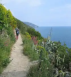 Hiking is very popular, especially on the main coastal paths, which are subject to park entrance fees. It's worth exploring some of the higher paths to Volastra (above Manarola), Monte Negro (above Riomaggiore) or paths that begin outside of the park such as the trail between Levanto and Monterosso. Suitable hiking equipment and proper health are required, wearing flip-flops, pumps or sandals within the national park is explicitly - and for good reason - prohibited. Neglecting this may lead to fines between €50 and €2,500, depending on level of distress and whether a rescue team is necessary.